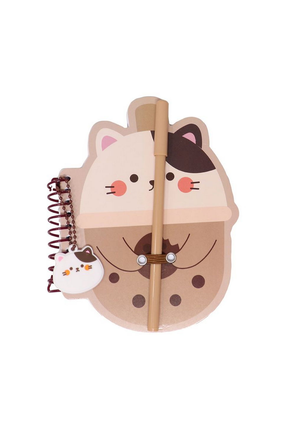 Miniso tiene para ti esta libreta de espiral en color caf\u00e9. | Dise\u00f1o de gatito estampado a contraste con detalle colgante. | Contiene 80 hojas blancas, incluye una pluma. | Tama\u00f1o 12.2x17 cm. | Gracias a su tama\u00f1o y dise\u00f1o te otorga una experiencia agradable de escritura. Modo de uso: Usar para escribir. Precauciones: Mantener lejos de fuentes de calor. Los ni\u00f1os lo deben usar bajo supervisi\u00f3n de un adulto