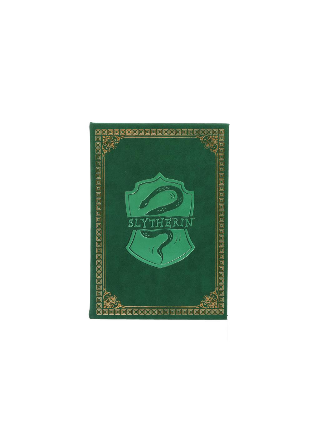 \u00a1Miniso trae para ti esta linda libreta Slytherin de tapa dura con bordes rayados de la serie Harry Potter! \u00a1Perfecta para los fan\u00e1ticos de la saga que quieren llevar sus notas y pensamientos con estilo!